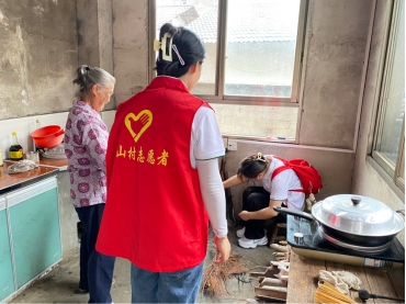 白发苍苍,手持拐杖,走路蹒跚,这些已成为老人的象征;孤单、寂寞、无助也似乎是老人的代名词。在乡村,年轻人外出打工,多数老人独居。老人们也想要子女的陪伴,但又害怕打扰到他们。今天上午,队员们前往村里看望孤寡老人,帮他们打扫卫生,和他们说话交谈,陪伴他们,帮助蔬菜瓜果除草浇水。聊天,看似一件很简单的事情,但留守老人是寂寞的。有人能和他们聊天大抵是生活中的很幸运的事情。听着爷爷奶奶讲述着他们年轻时候的故事,思考着团圆饭的含义。长大后,吃一顿饭不难,但吃一顿团圆饭很难。把温暖送给父母,让情爱陪伴老人。陪伴是最好的礼物!通过与老人家们的对话,乐观积极的人生态度和勤劳朴素的生活作风正感染这些冉冉升起的青年。