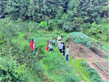 队员们顶着烈日田间劳作,体验面朝黄土背朝天,协助村民农田耕种、拔除杂草和锄地等。她们额头上沁出细密的汗珠,手上、衣服、鞋子上沾满泥土,却乐此不疲。平时在校园里,队员们常常处于舒适和便利的环境中,没有真正体验到农村劳动的艰辛,而此次下地干活,让大家亲身感受到了农村劳动的辛苦与繁重。